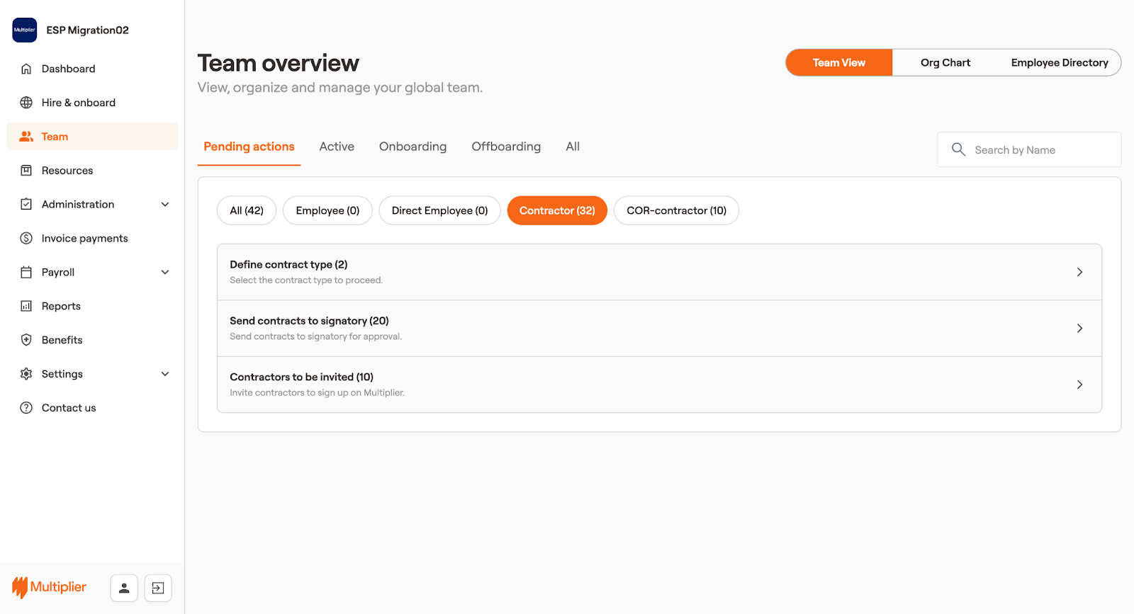14. The contractor has been added to your team. The added contractors are in the Team overview section, under the Onboarding tab. Here, the filter is pre-selected to Contractors.