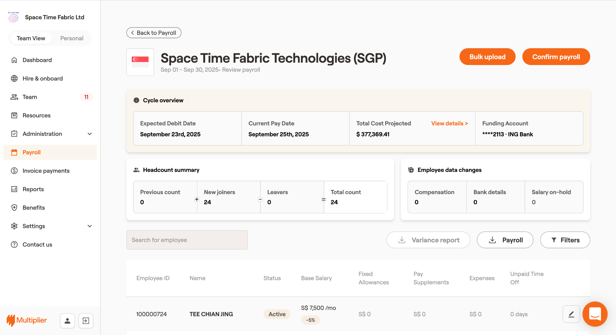 Multiplier's global payroll solution helps businesses manage payroll across 100+ countries from a single interface. It automates complex tasks such as multi-country tax calculations, benefits administration, compliance with local labor laws, and multi-currency salary disbursement.