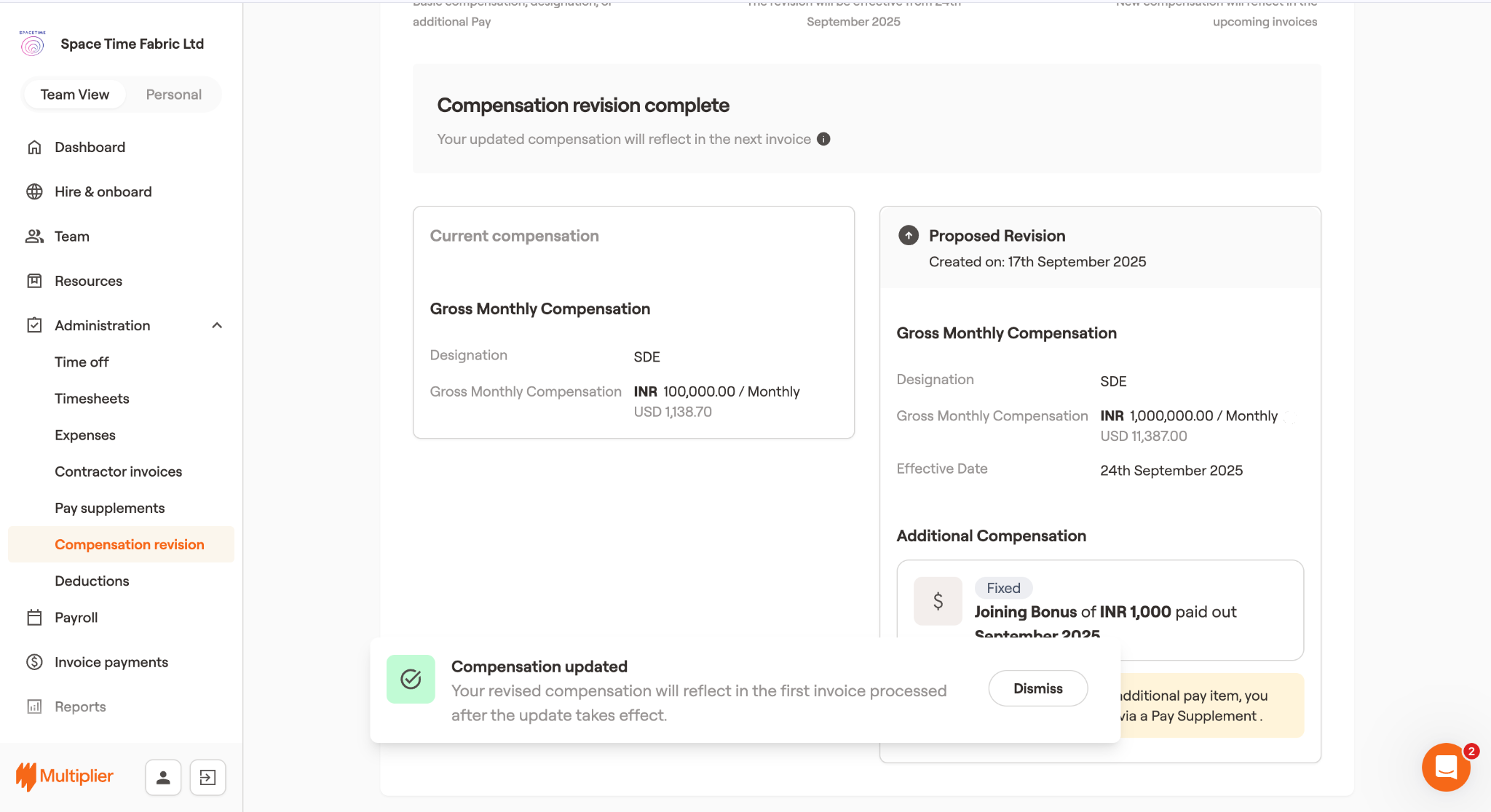From time to time, you may need to change the designation, compensation, or both for employees and contractors. Learn how Multiplier helps you with this:<br>